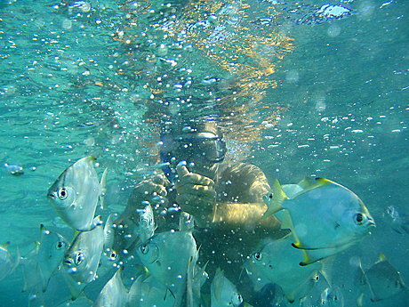 -Feed & snorkel with hundreds of sub-tropical fish off Wavebreak Island (1hr approx)