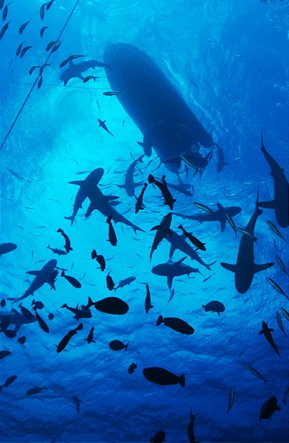 Friday & Saturday: Osprey Reef. Australia’s Coral Sea reefs are renowned for crystal clear water with an average visibility in excess of 100 feet. Two days can be spent diving at Osprey Reef, including North Horn, well known for its shark action. You can expect to see grey whalers, silvertips, reef sharks, occasional hammerheads, schooling barracuda, trevally, and other pelagics are common. The landscape is amazing with sheer walls laced with gorgonians, sea whips, and bright yellow soft corals rising from thousands of feet below.