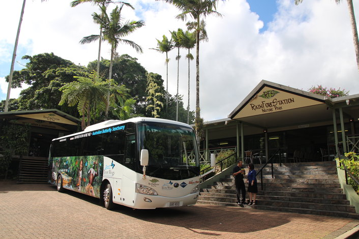 - Complimentary Pick Up & Drop-Off included for most Cairns City Hotels (Cairns Beaches pick-ups are not available for this tour). Pick-ups may occur prior to the advertised departure time of 9am from Cairns. PLEASE NOTE THAT YOU WILL BE REQUIRED TO CONTACT US WELL BEFORE TRAVEL DATE TO CONFIRM FINAL HOTEL PICK UP DETAILS. Please wait in hotel reception or outside, 5 minutes prior to pick-up time. Pick up times when confirmed are subject to change - allow 5 to 10 minutes either way due to traffic conditions. Tour commencement and termination times are approximate only.