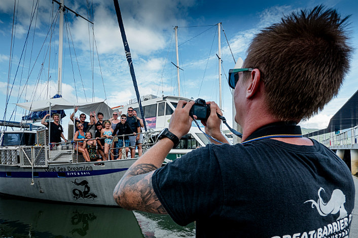 Board Coral Sea Dreaming by 7.45am at Berth 2, 'A-Finger' of the Cairns Marlin Marina on Spence Street. Vessel departs strictly on-time at 8am.