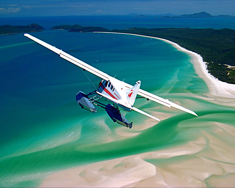 Visit famous Whitehaven Beach in style by seaplane. Flights depart daily and include a spectacular scenic flight over the Whitsunday Passage and a number of islands of the Whitsunday Island National Park group … a sprawling archipelago of jewel-green national park islands that sparkle in an aquamarine ocean … secluded beaches, fringing reefs and towering hoop pines complete the spectacular picture.