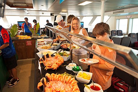 - Full Outer Reef experience, 10 minute scenic flight, Hot and cold buffet lunch with seafood, afternoon tea, on-board Wi-Fi access, free introductory snorkelling demonstration provided by a qualified instructor, glass bottom boat and semi-submersible coral viewing tours, touch some of the reef’s unique marine creatures in the marine touch tank, onboard reef ecology presentation by marine naturalist, children can enjoy the safety of the fully enclosed children’s wading pool, all snorkelling equipment provided.