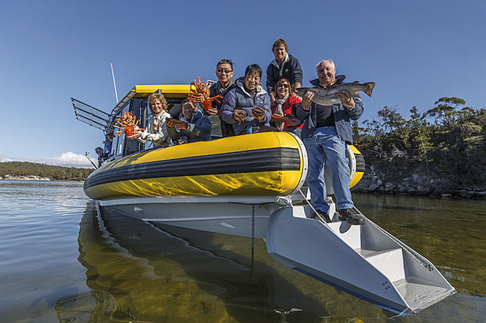 Your first port of call will be the aptly named ‘Get Shucked’ oyster farm, where you will harvest, then eat, your own fresh, clean oysters. Taste the difference! Next, you’ll make a brief stop in one of Bruny Islands calm bays while your guide dives I to retrieve some fresh sea urchin or abalone for you to try. All of this activity is accompanied by a gorgeous scenic backdrop, pristine landscapes, fresh ocean air, secluded beaches and coves lapped by the cleanest water imaginable.