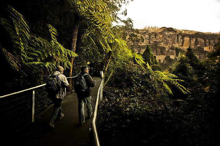 In the afternoon, our exclusive Wentworth Falls extension delivers you to the magnificent Wentworth Falls where you can take a 15 minute walks out to view the falls and feel like you're on the edge of the world.