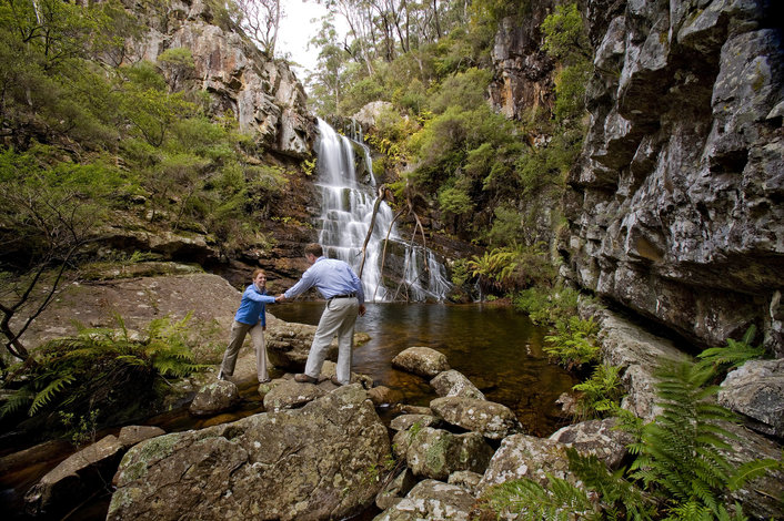 Hike along some impressive bush trails toward one of the most breathtaking waterfalls in New South Wales then settle in to watch the sun sink behind the distant mountains casting shadows over the rock formations and eucalyptus forests.