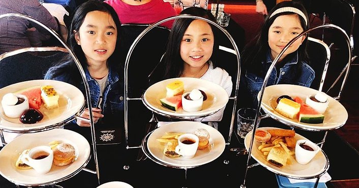 Teens (13-17 years) includes High Tea stand (as above) + soft-drink & juice Child (4-12 years) includes 2-tier kids stand + soft-drink & juice Infants (3 years and under) free of charge (no meal provided). Must be included in booking. If you would like your infant to recieve a kids meal as outlined below, please book them as a child. Kids menu (4-12 years): Tier 1: Chicken slider, cheddar cheese (G) Pulled beef tartlet (G) Chicken nugget (G) Crispy fries with tomato sauce (G) Tier 2: Chocolate mousse (G) Watermelon (G) Chocolate fondant (G) Fresh Seasonal Fruit Sample menu only, subject to change Vegetarian & Vegan platters available. Must be pre-booked at time of reservation